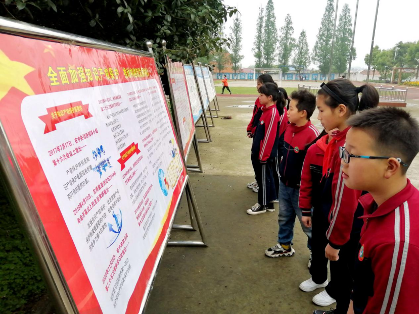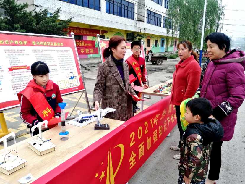 图为:随县尚市镇净明小学开展2021年知识产权日宣教活动。